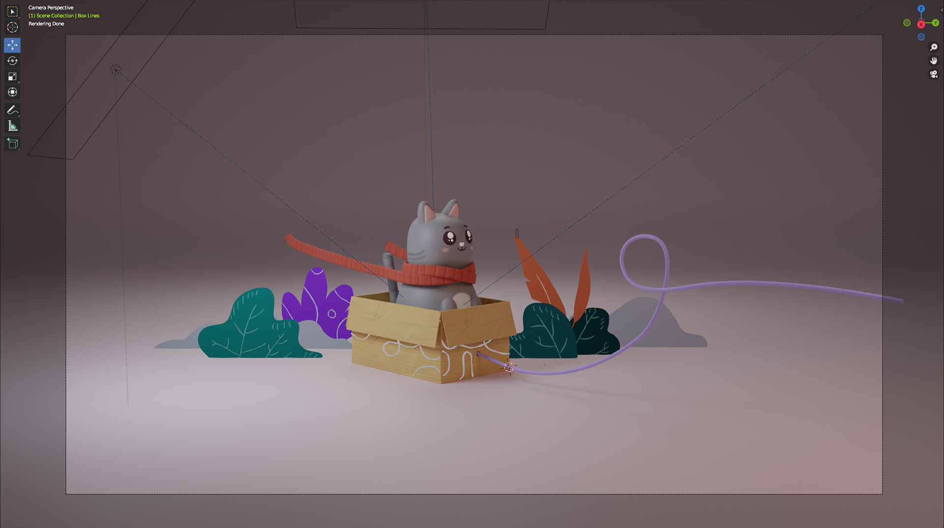 Then, I used Blender to create 3D models like the cat, the scarf, the box, and the mushrooms.